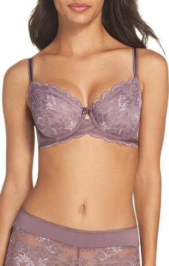 Opulent lace adds lavish detail to a full-coverage bra with shapely molded cups and the support of a comfortable underwire.