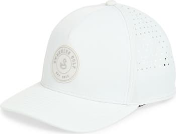 Perforated panels add textural interest and breathable comfort to this baseball cap, secured with a snapback strap for a perfect fit.