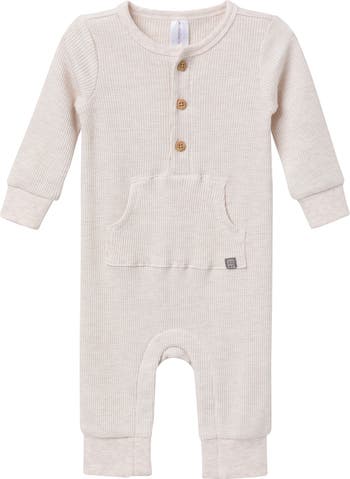 Crafted from soft and stretchy waffle knit fabric, our baby romper is perfect for all-day wear. Designed for cooler weather, this cozy romper features comfort-stretch ribbing at the neckline, wrists, and ankles, allowing your little one to enjoy endless play. Faux wood functional buttons complete the look while making dressing simple. Keep your little one warm and snug in our premium-quality romper. Our essentials have been independently certified with STANDARD 100 by OEKO-TEX® so that you don’t have to worry about harmful substances in your little one's wardrobe. Pack includes one romper.