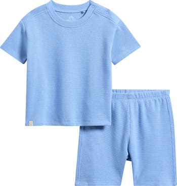 Baby will love cruising around in the comfort of this stretchy cotton set that pairs a waffle-knit T-shirt with matching shorts.