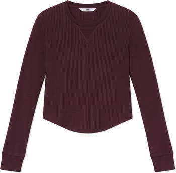 A supersoft waffle-knit lends luxurious comfort to this crewneck top that's perfect for sleep or weekend lounging.