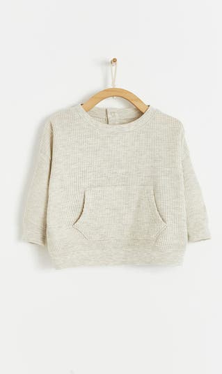 Soft, high-quality 100% cotton waffle romper with an oversized fit and kangaroo pocket. It features a snap-button opening at the back for easy access. Thanks to its shape and quality, it's comfortable, practical, and adorable for your baby.