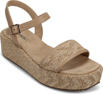 Woven construction amplifies the boho-chic vibes of this ankle-strap platform sandal complete with a lightly cushioned footbed.