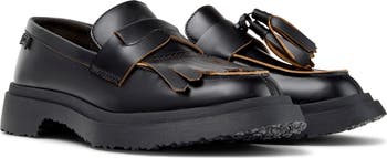Mismatched kiltie fringe and tassels bring signature complementary but not identical 'Twins' style to this leather loafer that's grounded on OrthoLite® cushioning and a chunky crepe sole.