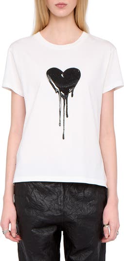 The artfully dripping mesh heart at the center of this cotton-jersey T-shirt is adorned in shimmering diamanté crystals.
