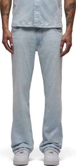 These vintage-inspired jeans feature a light wash, a hint of stretch and extralong legs with insets that create a flared profile.