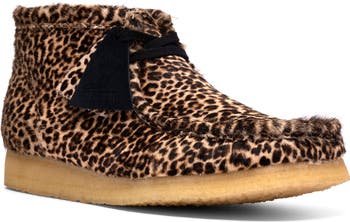 Set on a signature pebble crepe sole, this statement version of the iconic Wallabee is rendered in leopard-printed genuine calf hair and features a hand-stitched apron seam.
