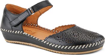 Laser-etched floral cutouts highlight this closed-toe sandal made with a breathable premium leather upper and a flexible forefoot.