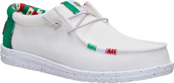 Classic, casual and exceptionally comfortable, this chukka-style lace-up sits on generous cushioning and a lightweight, flexible sole with a grippy tread that puts traction under every step. The hand-stitched moc toe, laces and back heel feature the colors of of different country flags.