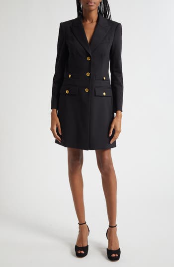 Glinting buttons add high-shine polish to this Italian-made blazer-dress made from stretch-kissed virgin wool.
