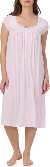 Pintucks, eyelets and scalloped lace sweeten this nightgown made from silky knit to keep you comfortable all night.