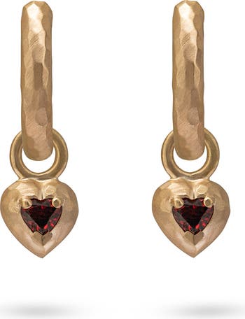 A meaningful duo that celebrates love, courage and lasting bonds. The Wander Hoops are matched with Heart Charms, set with 1.06 ct. of Natural Red Garnet. A captivating gem known for its passion, vitality and grounding properties. 100% Handmade in Italy.