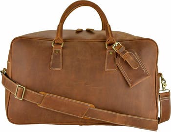 Our Roadster Bag meets International Carry On Requirements. We selected thick genuine cow leather, quality hardware and nylon fabric to craft a premium top quality bag. This bag is perfect for weekend getways which can fit clothes, an IPAD or lap top, books, magazines, as well as many personal accessories. Handmade Vintage Genuine Cowhide Leather Roadster Bag Measures 20" X 12" X 9" with a 55" Carry Strap. Features Inside zipper pocket, laptop sleeve, cell pocket, and passport or billfold pocket We selected premium genuine cow leather, quality hardware, and nylon fabric to make this exceptional bag. Perfect Size for a Weekend Getaway to the City or the Country