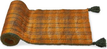 - Warm Wishes Mohair Plaid Table Runner is made of soft wool and measures 72 inches long by 16 inches wide.