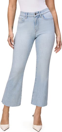 Superstretchy denim lifts, smoothes and sculpts in these cropped, slim-cut flare jeans that are a comfy choice for days on the go.