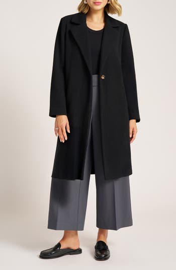 Finish lots of looks with a classically styled coat closed with a single button and offered in a soft knit.