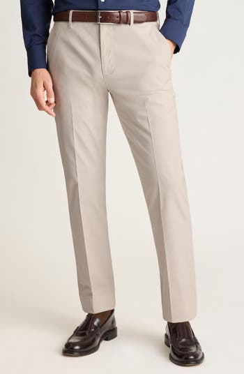 A sharp look for any day of the week, these slim-fitting flat-front pants are made from smooth, easy-care stretch cotton in a subtle stripe pattern.