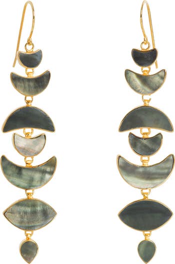Harness the mystery of the night with our Warrioress Noir Moon Drops. Beautifully handcrafted in 18ct Gold Plated Sterling Silver with dark, iridescent Mother of Pearl Shell, they celebrate feminine strength and lunar power. Bold yet timeless, they shine for the woman who thrives in her own light