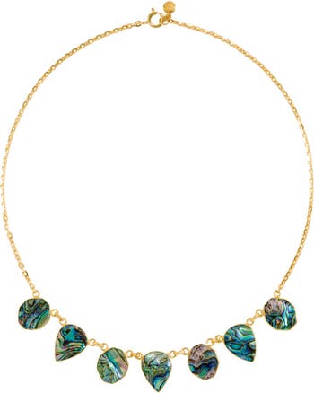 - 18ct Gold Plated Sterling Silver Necklace with 7 Paua/Abalone Shell Pendants