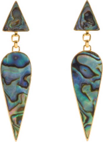 Command attention with the Warrioress Wonder Paua Earrings. Handcrafted in 18ct Gold Plated Brass, their arrow-inspired silhouette glimmers with the divine green/blue Abalone shell's natural vibrancy, echoing the fierce beauty of the sea. A statement of wonder and strength, they are a striking companion from everyday to evening