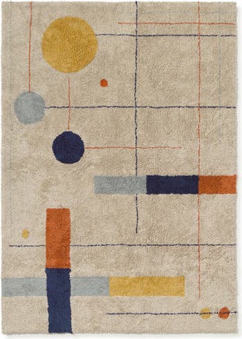 Inspired by Bauhaus, this washable rug adds playful pops of color to your home. Perfect for kids’ adventures or adding a fun twist to other spaces. Cotton rugs may shed fibers when new or during use. After unpacking, lay the rug flat for 2–3 days, then gently brush or vacuum to restore the pile.