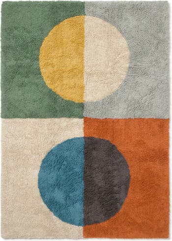 Bold, geometric, and full of personality, this washable rug turns any room into a mini gallery of fun. Perfect for kids’ creativity and playtime, or to add a statement piece to other spaces. Made from soft cotton, the rug may shed fibers at first—all part of its cozy charm! After unpacking, lay flat for 2–3 days, then brush or vacuum gently to restore the pile.