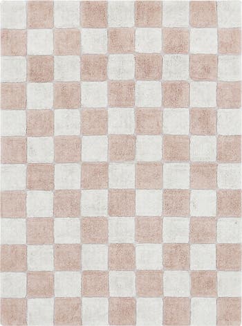 Kitchen Tiles Rug, inspired by vintage ceramic floors, features a checkered pattern on a RugCycled/Natural canvas base, with the base slightly visible between the colored squares to mimic authentic tile textures. Available in four soft and contrasting color combinations: Natural & Blue Sage, Natural & Dark Grey, Natural & Rose, and Natural & Toffee, bringing a playful yet elegant touch to any space.