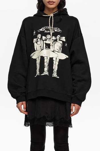 Long sweatshirt made from organic cotton and recycled polyester. Designed with a round neckline and drawstring hood, long shaped sleeves, and a logo print