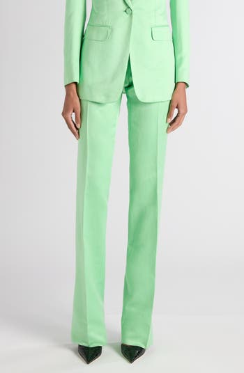 The fashion house's dedication to premium craftsmanship shines through the silk-and-cotton duchesse satin of these trousers cut in a crisp, clean-lined silhouette with creased straight legs.