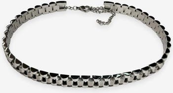Watchband Choker by KATE BARTON blends precision and sophistication into a statement piece. Crafted from premium stainless steel in a polished silver finish, this choker features a sleek, watchband-inspired design that contours effortlessly around the neck. An adjustable clasp at the center back ensures a customizable fit, combining function with refined form. Minimalist yet bold, this piece embodies KATE BARTON's commitment to architectural detail and modern luxury.