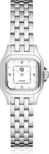 Watch made of stainless steel, polished and brushed surface, with sapphire glass, and a matte white dial. Water resistance: 30 m. Movement Miyota.