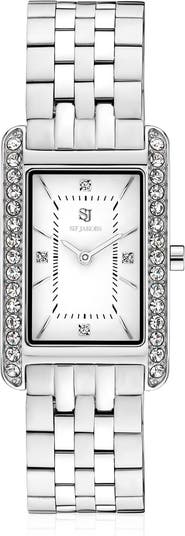 Watch made in silver plated stainless steel, polished surface with sapphire glass and semi-matt white dial, decorated with white zirconia. Water resistance 30 m. Movement Miyota.