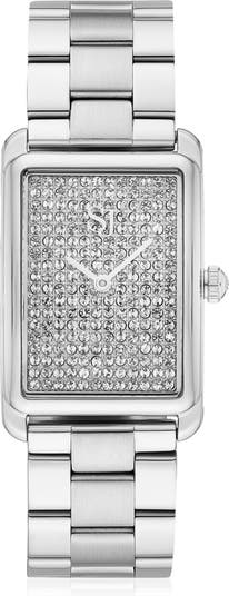 Watch made of stainless steel, polished surface, with sapphire glass and white zirconia in a silver sunray dial. Water resistance 30 m. Movement Miyota.