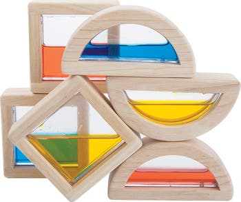 Kids can view the world through a colorful lens with these water-filled wooden blocks that they can stack and discover how gravity affects liquids. Kids can learn about color theory as they place blocks on top of on another to see what new color they can create. Lay the blocks flat or stack on their sides to see how the liquids goes from covering the whole window to only a portion.
