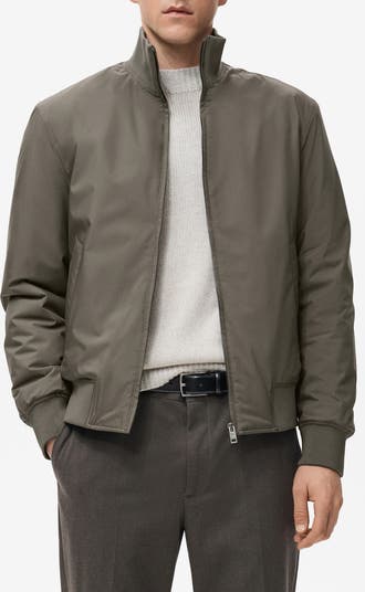 Equal parts utility and polish, this bomber backs a smooth weather-shedding exterior with plush quilting that cocoons the core. The upright stand collar brings a crisp finish as rugged rib trim seals the edges and keeps the silhouette close.