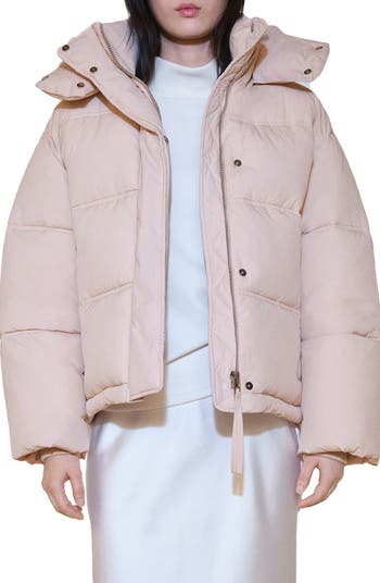Level up your cool-weather wardrobe with this channel-quilted puffer jacket fashioned with a cozy hood and a water-repellent coating to keep raindrops at bay.