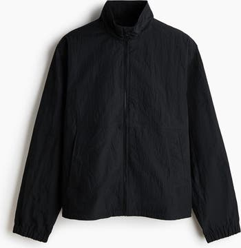 Windbreaker in windproof and water-repellent nylon featuring a stand collar, a zip down the front with an anti-chafe chin guard and a back vent. Long sleeves with covered elastication at the cuffs. Welt side pockets with a concealed press-stud, and an elasticated drawstring with cord stoppers at the hem. Mesh lining.