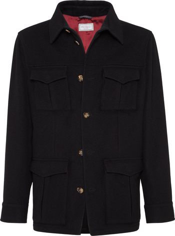 - Horn button closureShirt-style collarUpper patch pockets with flap and buttonPatch hand pockets with flap and buttonButton cuffsCupro half liningTwo interior pockets with button closure and pen holder