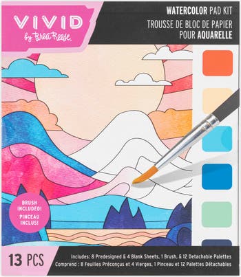 WATERCOLOR PAINTING PAD KIT: NATURE - Bring the beauty of the outdoors to your art with the Nature Watercolor Painting Pad Kit by Brea Reese! Featuring 8 stunning nature-inspired illustrations—from serene landscapes to blooming flowers—this kit is perfect for mindful creativity wherever you are. Each page includes a detachable watercolor palette with rich, pre-applied colors—just wet your brush and start painting, no extra supplies required! With 4 additional blank sheets, you can sketch your own nature scenes, doodles, or imaginative designs. Whether you're painting from a sunny porch, a park bench, or your kitchen table, this portable set makes it easy to create wherever inspiration strikes. Designed for artists of all levels, the kit also includes a quality brush and thick paper suited for watercolor use. It’s a relaxing, screen-free activity ideal for solo time, nature journaling, or quiet creative breaks. Get inspired by the outdoors. SAFE & NON-TOXIC: Conforms to ASTM D-4236. INCLUDES: 13 pieces total. contains 8 pre-designed sheets, 4 blank sheets, 1 brush, and a detachable watercolor palette on every page. EASY INSTRUCTIONS: Step 1: Detach palette. Step 2: Wet brush to paint. Step 3: Dry & display.