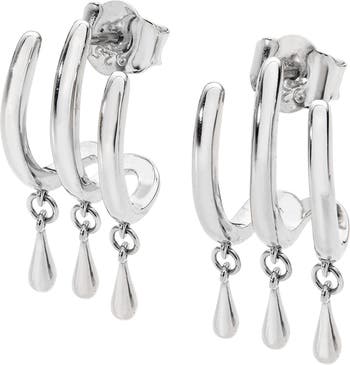 These stylish hoop stud earrings are inspired by our Waterfall design, featuring elegant drops that add movement and sophistication. Crafted from high-quality 925 Sterling Silver and Hallmarked in the UK, they come with Rhodium Overlay to enhance their shine and durability.