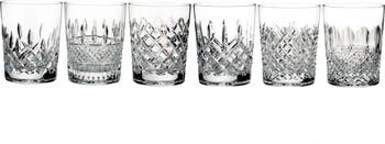 A collection of six crystal double old-fashioned glasses lets you enjoy whiskey, bourbon and cocktails in style while exemplifying timeless Waterford elegance. Immaculately cut Lismore, Araglin, Powerscourt, Colleen, Alana and Irish Lace patterns lend brilliant clarity and weight to the stunning glassware.
