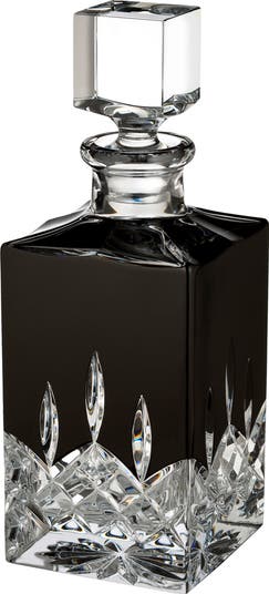 The rich, opaque black of this square decanter lends striking contrast to the classic, sparkling clear crystal, while the deep cuts and contemporary shapes of the signature Lismore pattern make it perfect for everyday use or special occasions.