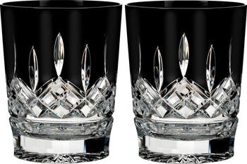Elevate your home bar with these elegant double old-fashioned glasses in a striking black tint. The glasses are presented as part of the Lismore Diamond collection, a reinvention of a timeless Waterford pattern that enhances the clarity and brilliance of the crystal with intricate diamond cuts.