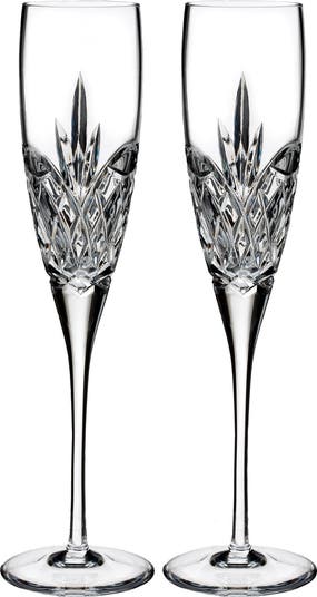 Commemorate your milestone anniversary with this set of elegant toasting flutes featuring sparkling, stylized representations of the eternal flame of love.