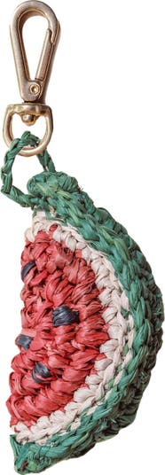 Handwoven by artisans from natural raffia, this watermelon slice charm brings big summer energy to your favorite bag. Subtle variations in weave and color make each charm one of a kind.