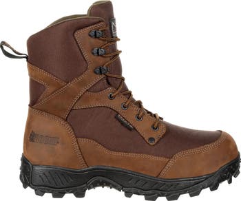 The ROCKY® Ridgetop Waterproof Hunting Boot blends all your favorite features into a men's boot made to enhance your outdoor adventures. Made with guaranteed ROCKY® waterproof construction this outdoor boot is both windproof and waterproof. For your later season trips we've added 600 grams of 3M Thinsulate Ultra Insulation to keep you warm all day long. A value for mobility is also found in the outsole of this thoughtfully-designed hiking boot. The LightTrac rubber outsole secures your safety with exceptional traction and support without weighing you down. This lightweight feature defies the myth that sturdy structure has to be heavy. It's a high-quality hiking boot that lets you roam free. Don't let rough terrain take a toll on your good memories. This waterproof hiker boasts a dual-density EVA midsole that provides cushion and comfort to your feet as they conquer nature's elements. A contoured removable polyurethane insole compliments this comfort with luxurious relief. You'll be exploring the outdoors all day without an ache to end the excitement. The eight-inch outdoor boot boasts an upper made from nubuck leather and 900 denier nylon. The durable design is sure to look fantastic for years of exhilarating adventure. If you're after a tough boot to accommodate your explorative spirit, the Rocky Ridgetop Waterproof Boot is a solution with experience-enhancing features to ensure your comfort in the field.