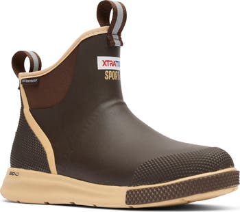 This waterproof deck boot was originally crafted for off-shore anglers and is designed for high-level activity on decks and other slippery surfaces. A cushioned footbed and a slip-resistant sole complete this sturdy style.