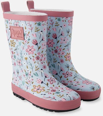 Our natural rubber rain boots in blue with mini flower print are designed to keep little feet dry and comfortable through every puddle adventure. Crafted from 100% natural rubber, they feature a cute allover print, and a fine plush lining for extra warmth and softness. BPA, phthalate, and PAH free, these waterproof boots are a safe and durable choice for all.