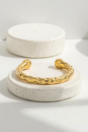 Indulge in timeless elegance with our Waterproof Textured Gold Cuff Bracelet. The gold-toned cuff design offers modern and sophisticated style, while its durable construction ensures long-lasting shine and allure. Elevate your look with this striking blend of design and luxury.