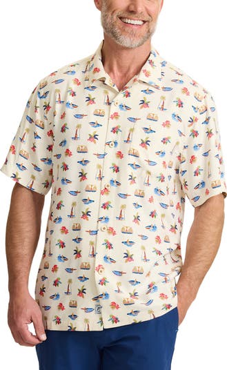 Light as a warm breeze and smooth as a slow river current, this short-sleeve button-up is cut from silk for an easy drape that moves beautifully. The vacation-ready print seals the mood and makes every sunny plan feel better.
